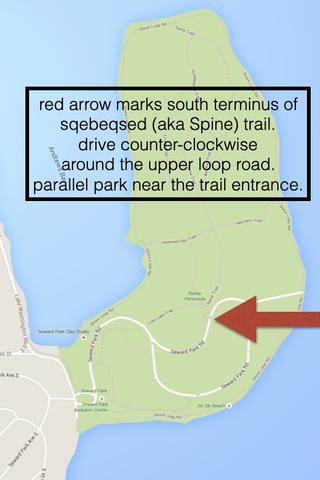 Upper loop road, Seward Park, at the sqebeqsed trailhead. See map